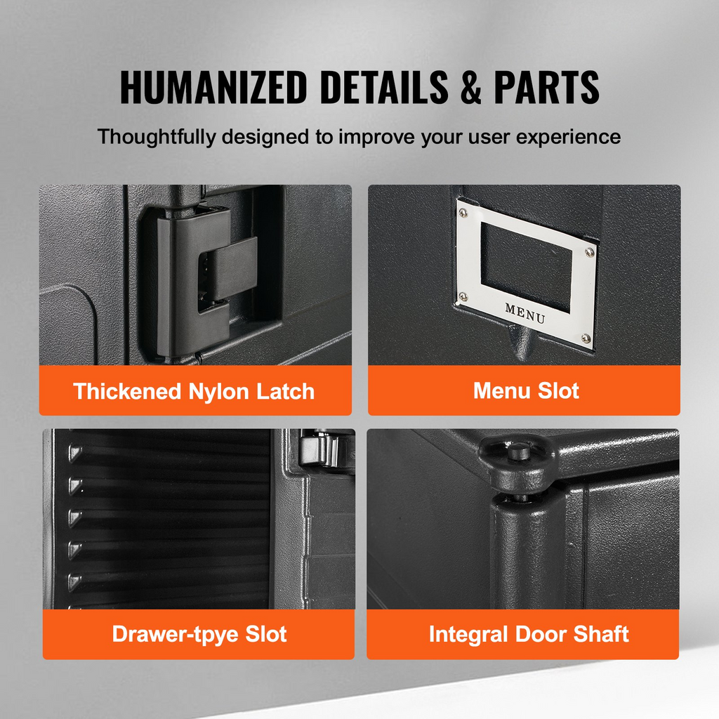 VEVOR - Caja térmica para alimentos de 82 qt para catering, caja térmica para alimentos de LLDPE con hebillas dobles, calentador de alimentos de carga frontal con asas, cargador apilable para restaurantes, cantinas, etc. Color negro