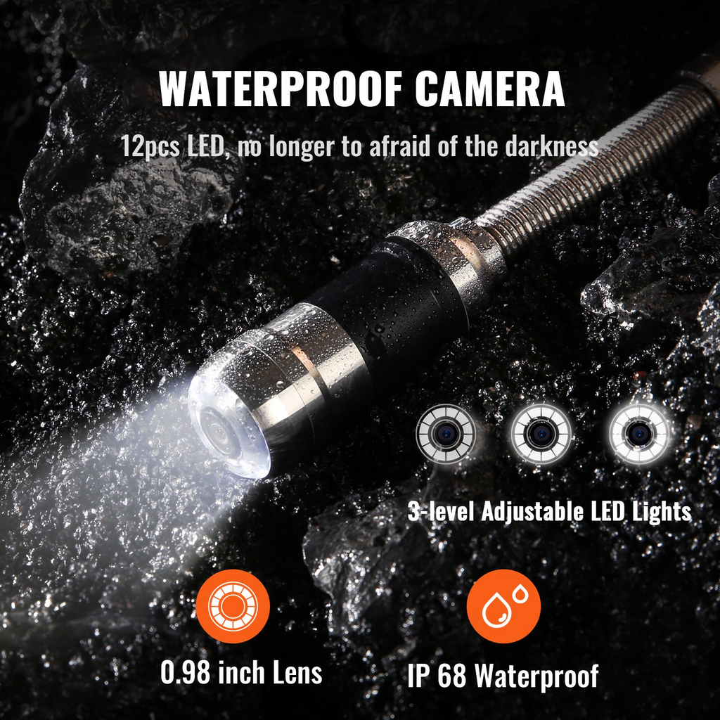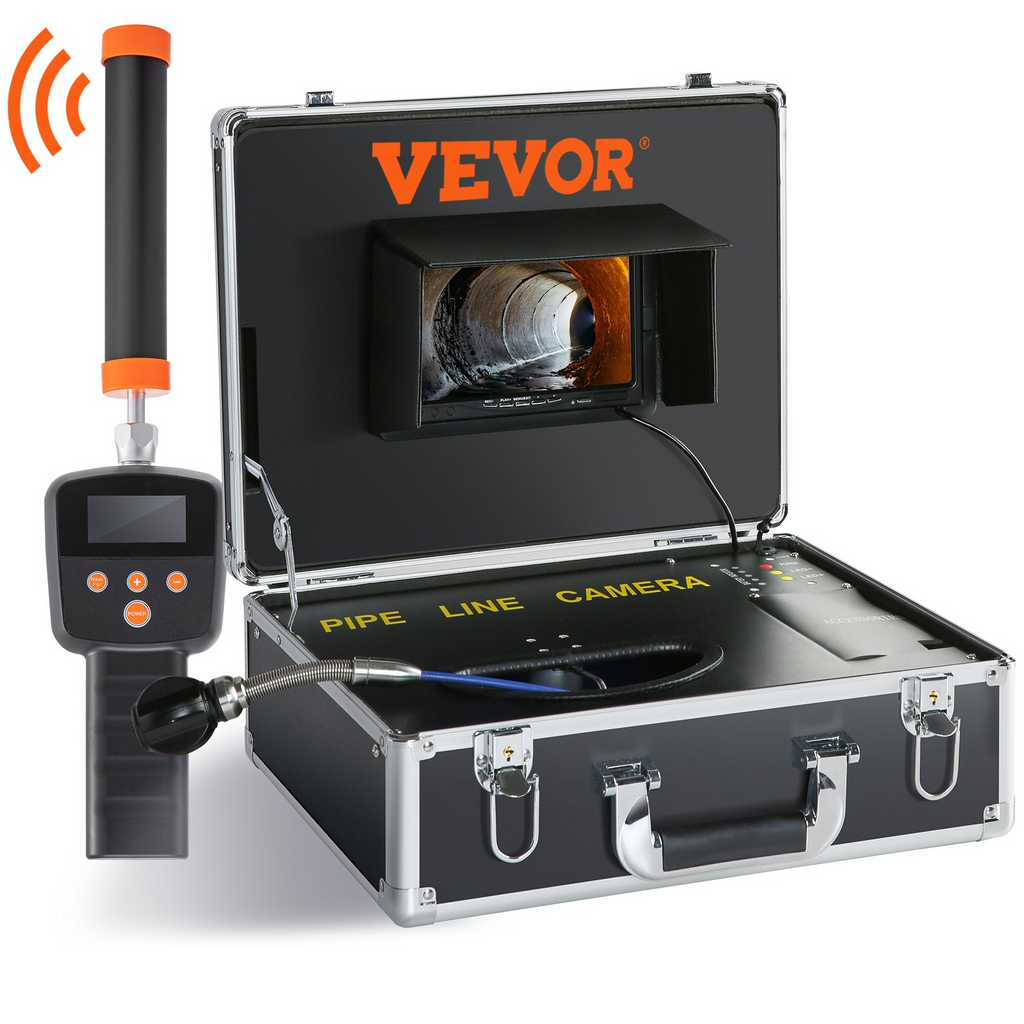 Cámara de alcantarillado VEVOR con localizador de 512 Hz, 30 m (100 pies), cámara de inspección de tuberías de 7" con función DVR, cámara IP68 con 12 LED ajustables, tarjeta SD de 16 GB para línea de alcantarillado, hogar, tubería de drenaje de conductos,