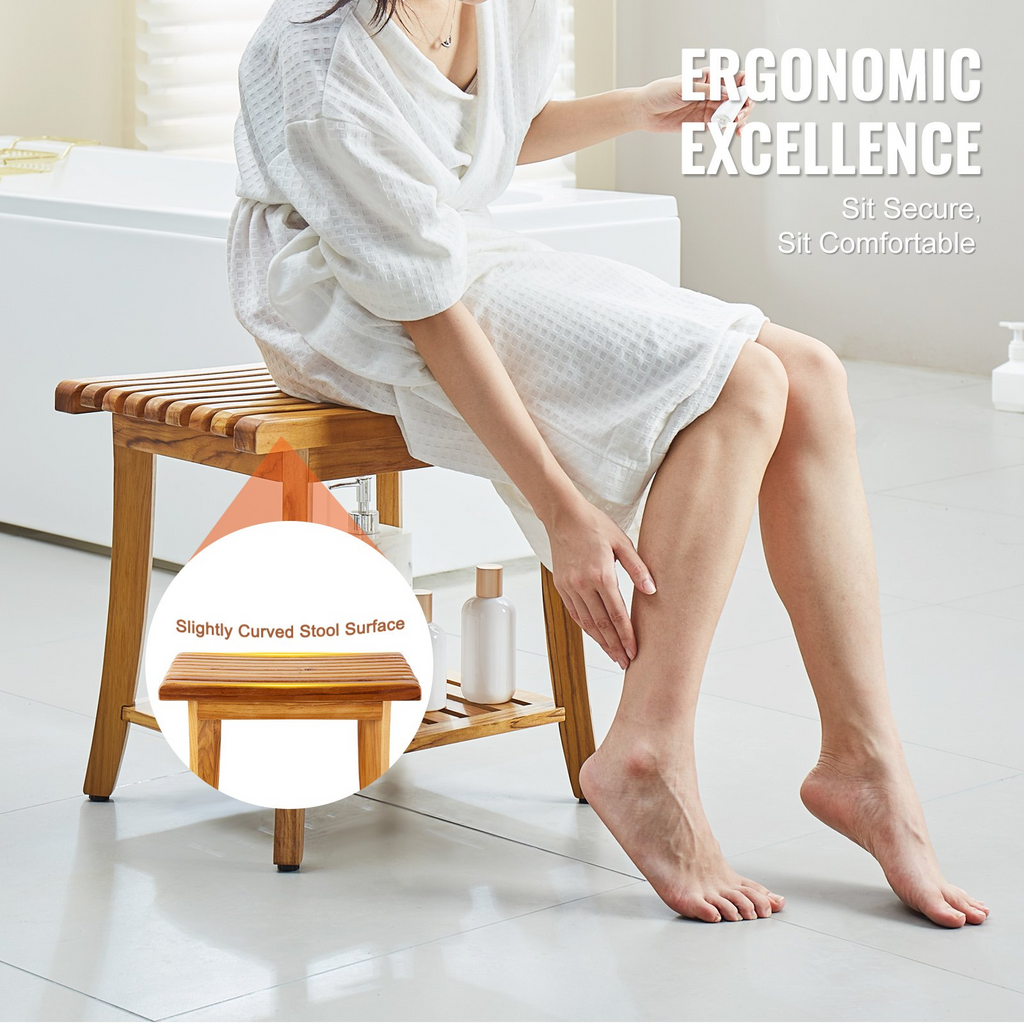 VEVOR Banco de ducha de teca de 20 x 14,3 x 17,9 pulgadas Taburete de ducha de madera Silla para baño