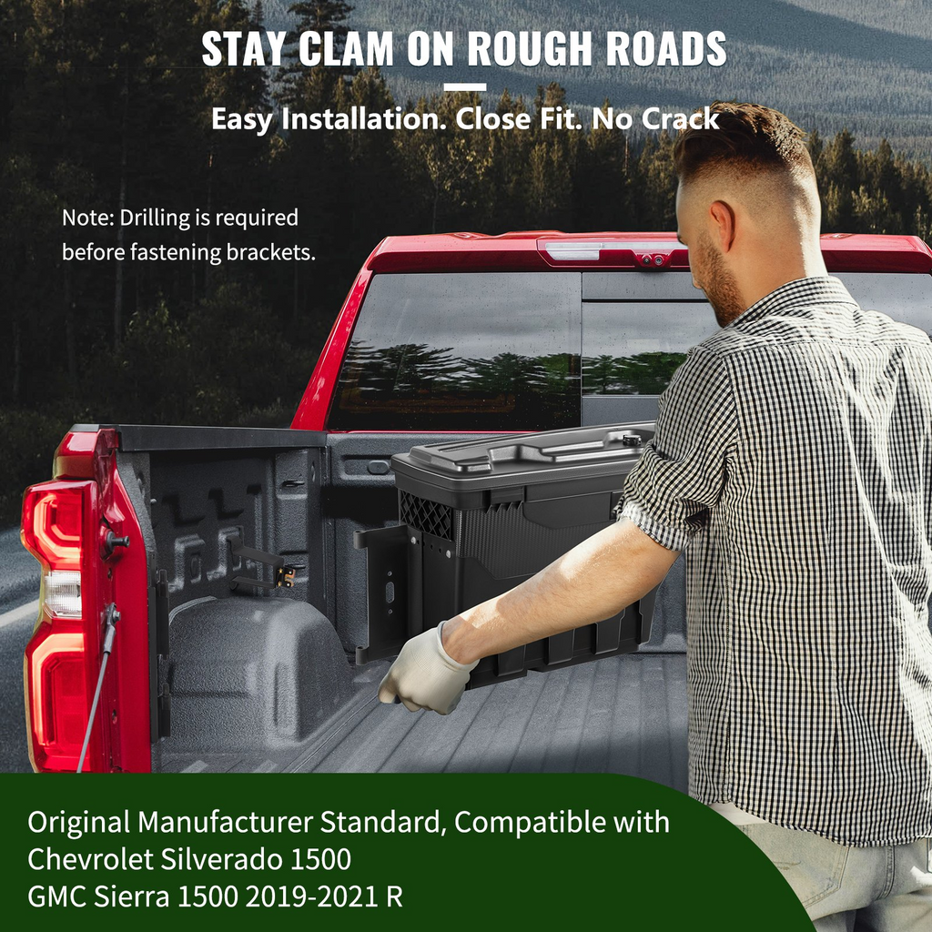 VEVOR Caja de almacenamiento para caja de camioneta, tapa con cerradura, caja de herramientas impermeable ABS para hueco de rueda de 6.6 gal/20 L, compatible con Chevrolet Silverado 1500 GMC Sierra 1500 2019-2021, lado del conductor, color negro.